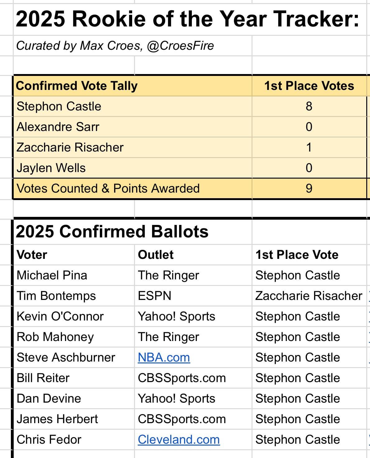 The late narrative around Risacher potentially winning never made any sense to me. It was Castle for more than half the season, particularly post all star break. He was absolutely insane and instrumental in the Spurs not going on any massive losing streak.