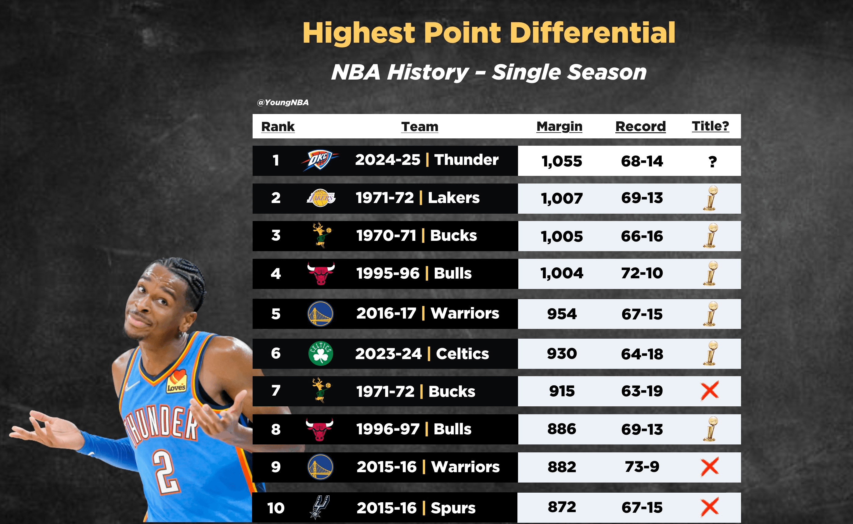 - SGA had a +918 +/- over the season, 5th highest in NBA history