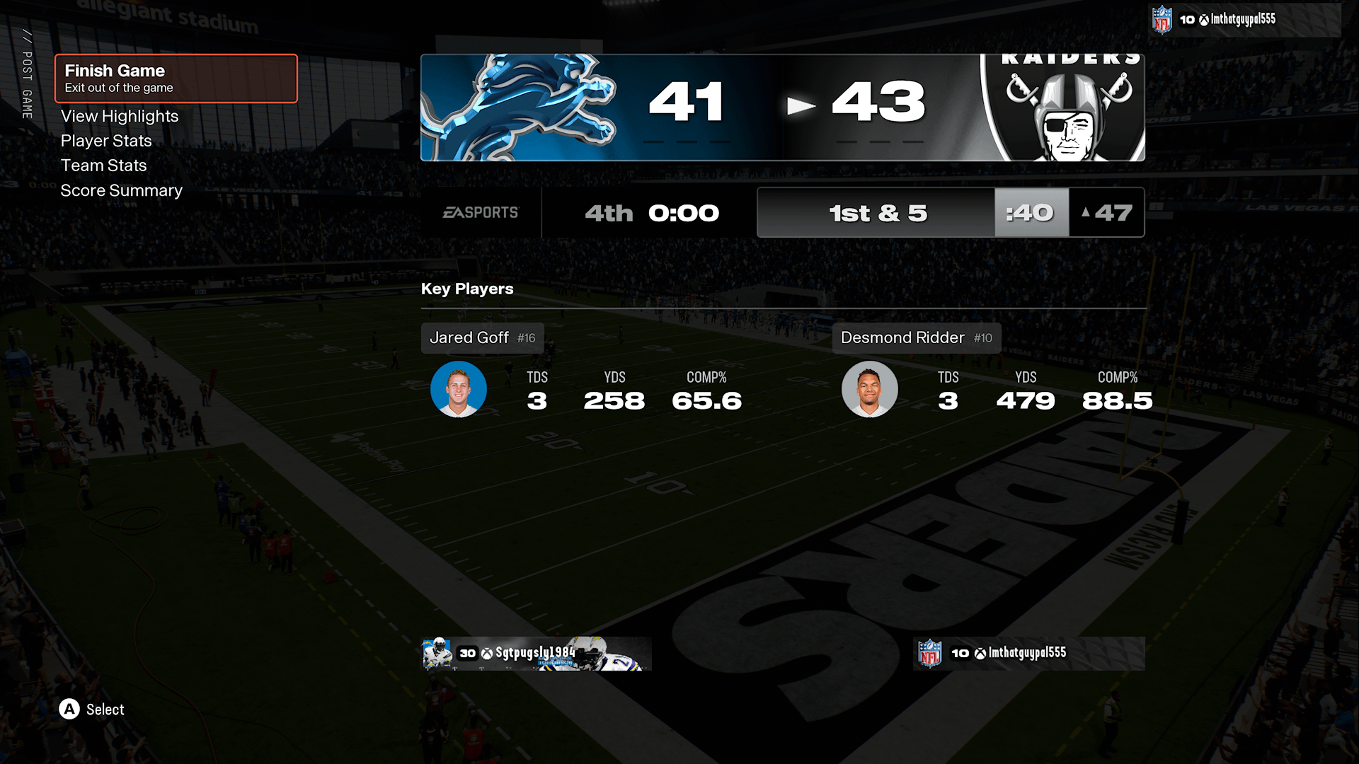 Average Madden 25 Game 6 comments The stat line for Goff is pretty standard… I’ll chalk it up to a career game by Desmond ridder Lions moment Yall are able to score points in 25? Isn’t it annoying how absolutely useless defense is in this game? Amazing how they manage to make the game a little worse every year for a decade Ridder is low key really good in Madden. He can throw on the run with the best of them, and Brock Bowers being unstoppable also helps. Leave a ReplyYou must be logged in to post a comment.