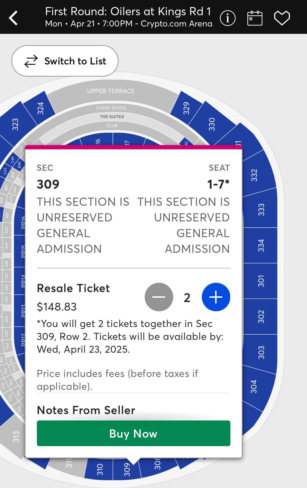 I’m looking to get tickets to game 1 vs. the Oilers on Monday and saw this when I click on many seats on Ticketmaster. What does “This section is unreserved general admission” mean?