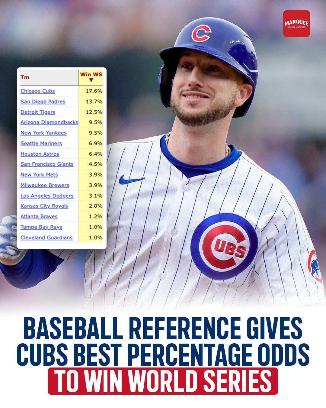 Baseball Reference currently has the Cubs with best percentage odds to win World Series