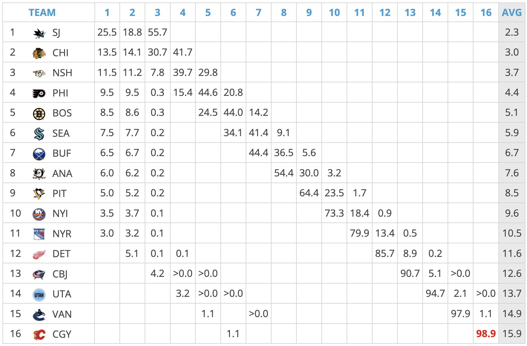 However because of the NHL’s rule that teams can only move up 10 spots, this means that only teams ranked 1st to 11th can jump to 1st, and 1st to 12th to 2nd. If a team like the 12th-ranked team wins the first draw, they’d jump to 2nd, and if another lower team (e.g., 13th) wins the second, they’d jump to 3rd, pushing the Ducks to 3rd at highest. Any other scenario where lower teams don’t win enough lotteries keeps the Ducks at 8th or lower (9th or 10th).