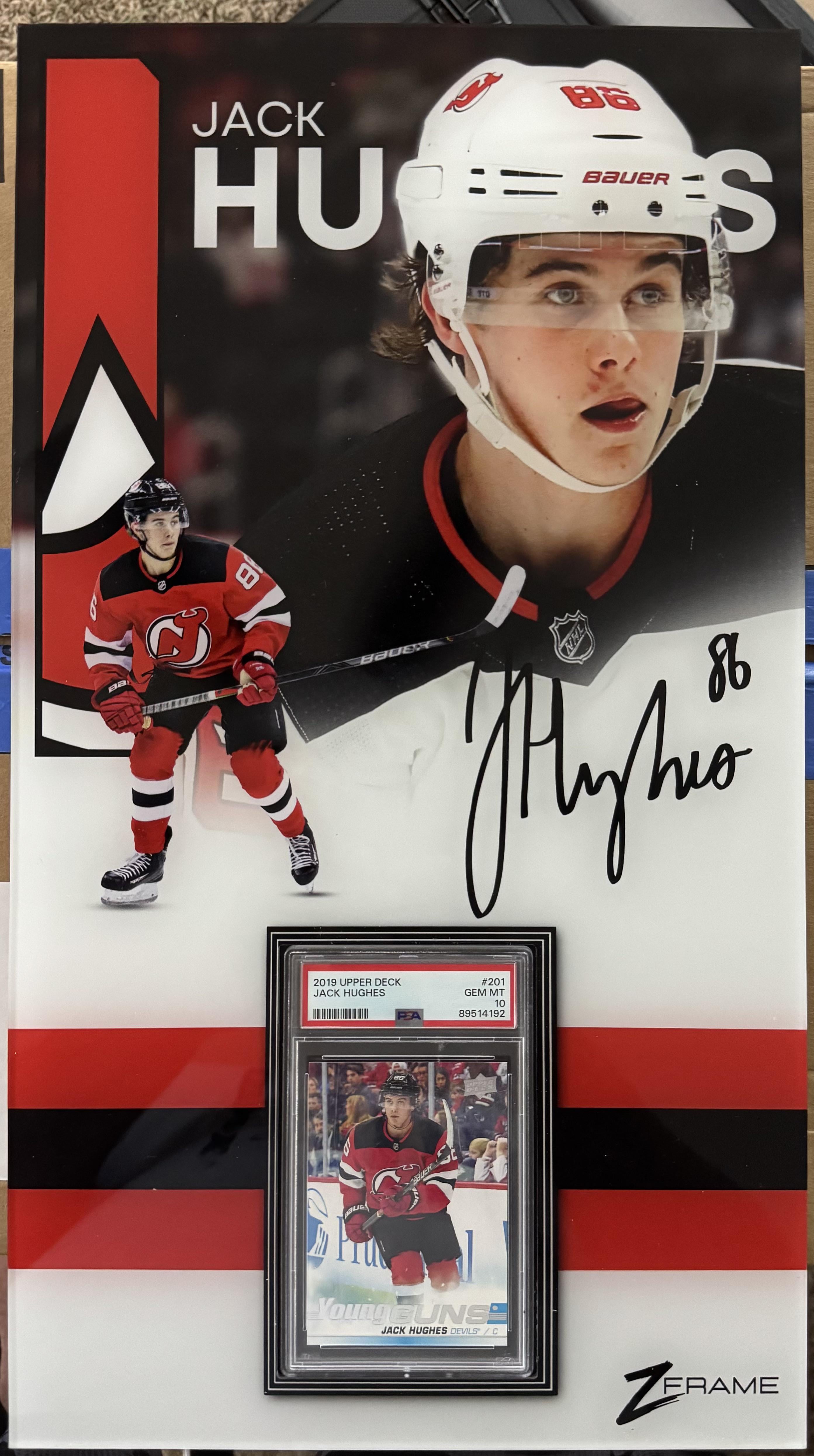 I bought this cool custom Jack Hughes frame to house his “Young Guns” Rookie Card. About a month ago and it finally arrived today.