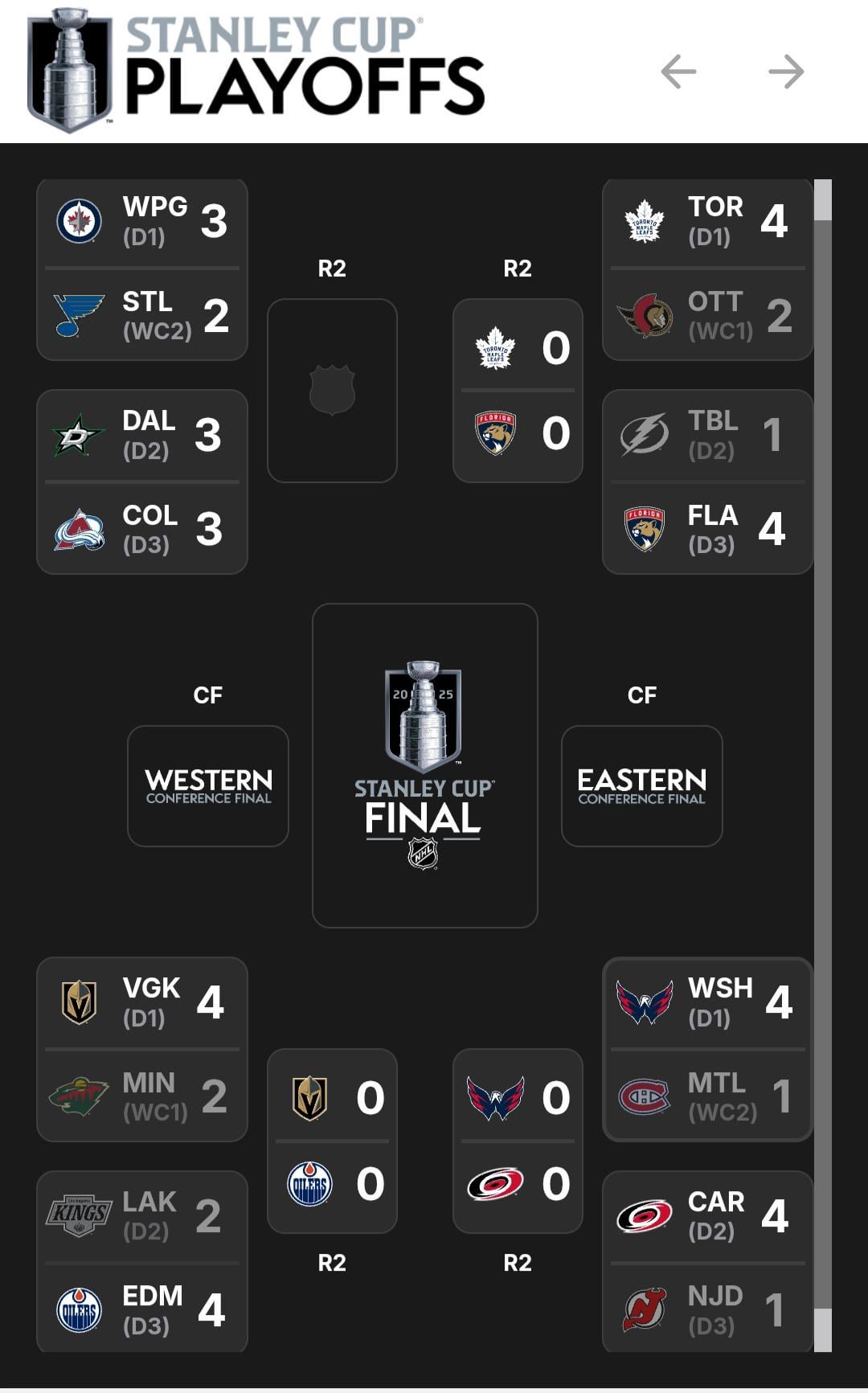 I think we’re destined to see a Vegas vs Colorado and Panthers vs Capitals matchup with the Panthers and Av’s the winners.