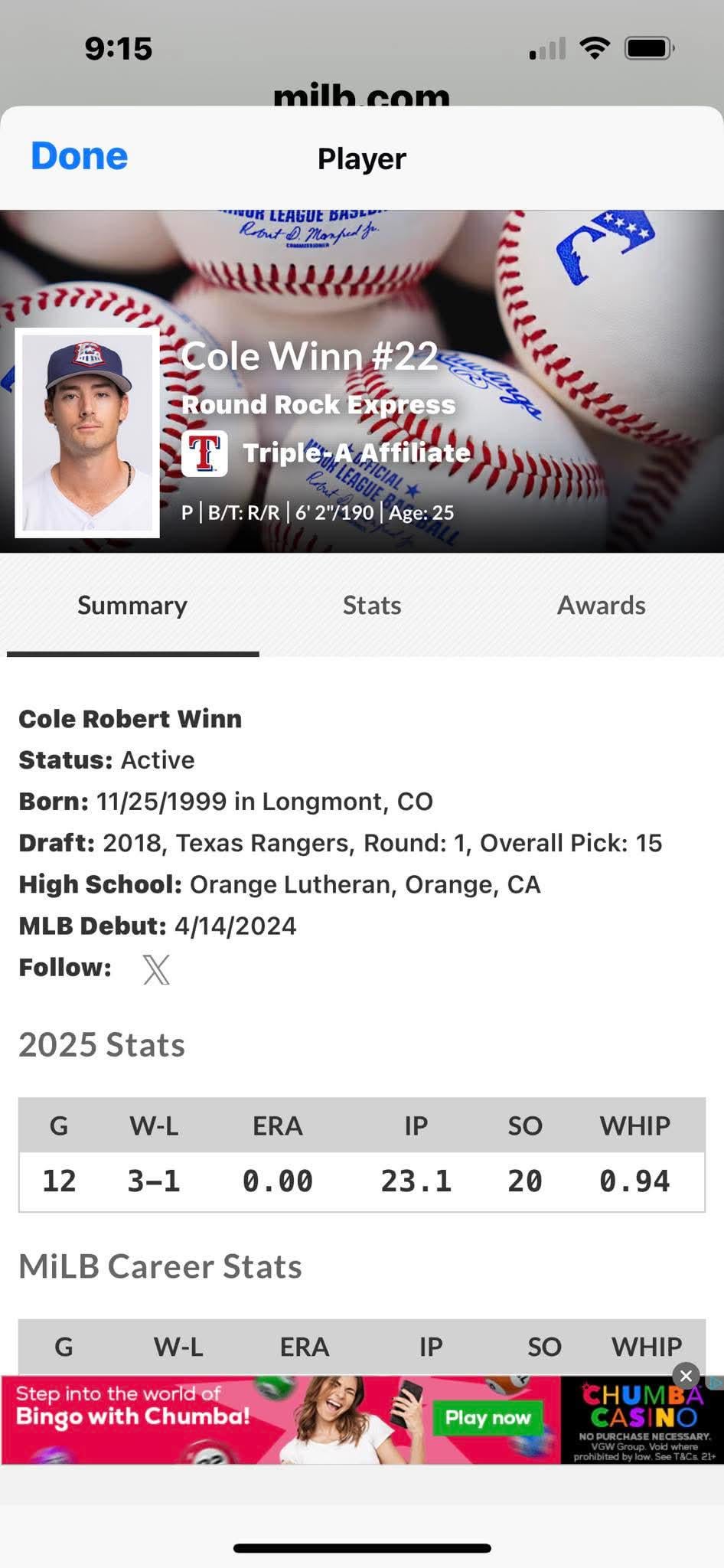 Cole Winn is dominating AAA This Year. 23IP and No Runs. Sub-1 WHIP 4 comments Would be huge if he becomes a dominate RP. Our potential pen could be nasty in the coming years walk rate is still a little high for me but pretty solid! would love for him to be a cheap bullpen piece for the next couple of years All he does is Winn Kinda wild that he has a loss with a 0.00 ERA Leave a ReplyYou must be logged in to post a comment.