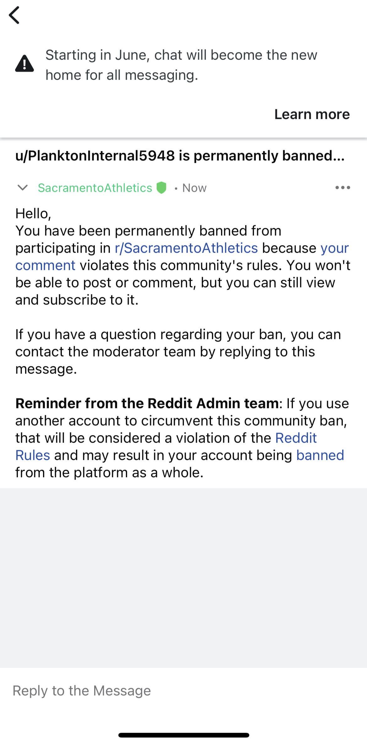 Go check my comment history for what I said, nothing outrageous at all, just calling out the Sacramento fan base for being abrasive towards the Oakland fan base. Soft ass bitches over there. I’m not even an Oakland fan, I’m a Phillies fan who lives in sonoma county that has love for the athletics