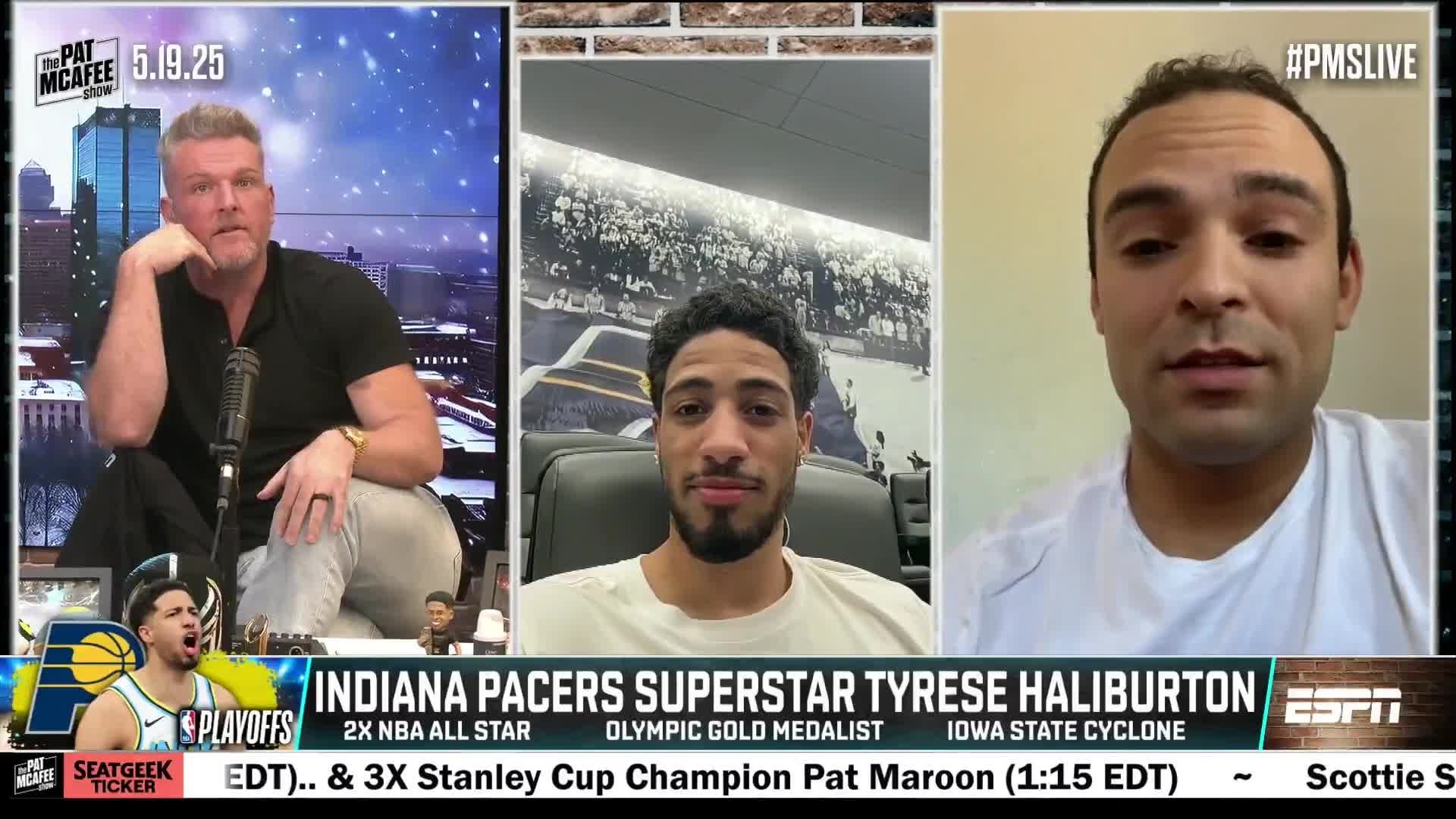 Tyrese Haliburton goes on the Pat McAfee Show to talk to the Pacers fan that was attacked by Knicks fans after Game 6: “I want to personally bring you and a plus-1 out here to Indiana for Game 4, everyone in the org wants to make sure you’re taken care of, everyone on the team’s excited to meet you”