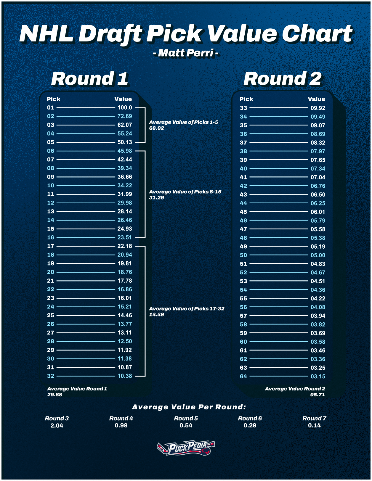 I was looking for a draft pick value graphic and couldn't find a good one so I took information from PuckPedia's pick value calculator and made a visual for it!