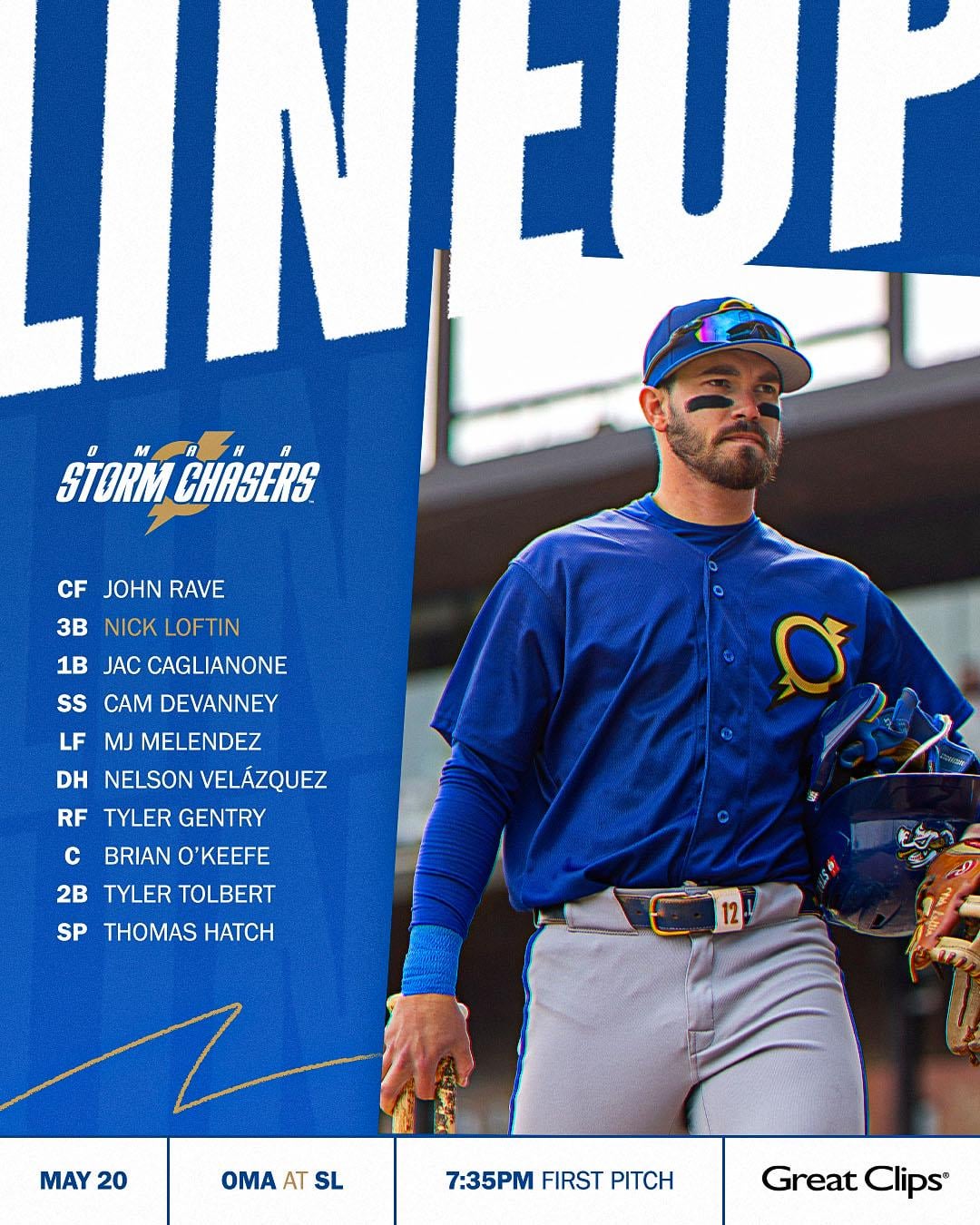 Jac Caglianone will hit third and play 1B in his AAA debut tonight.