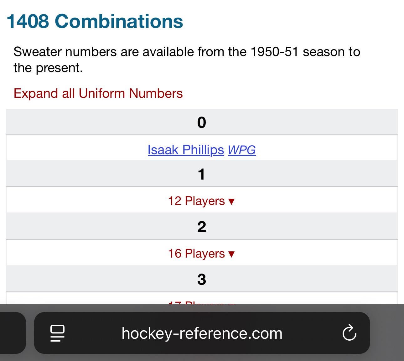 Phillips wasn’t given a number at the NHL level so I assume the automatic database displays that as 0. He wears 3 for the Moose