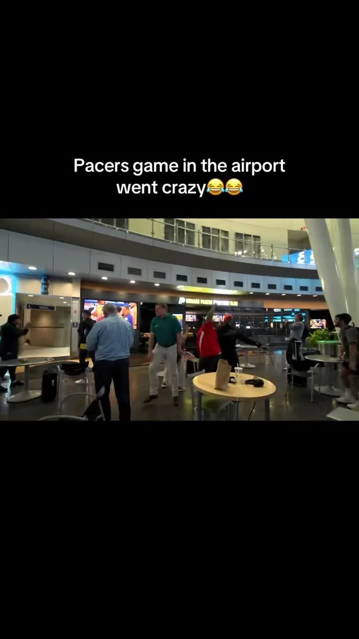 Pacers fans at the Indianapolis International Airport react to Tyrese Haliburton’s game-winning shot in Game 1 of the NBA Finals