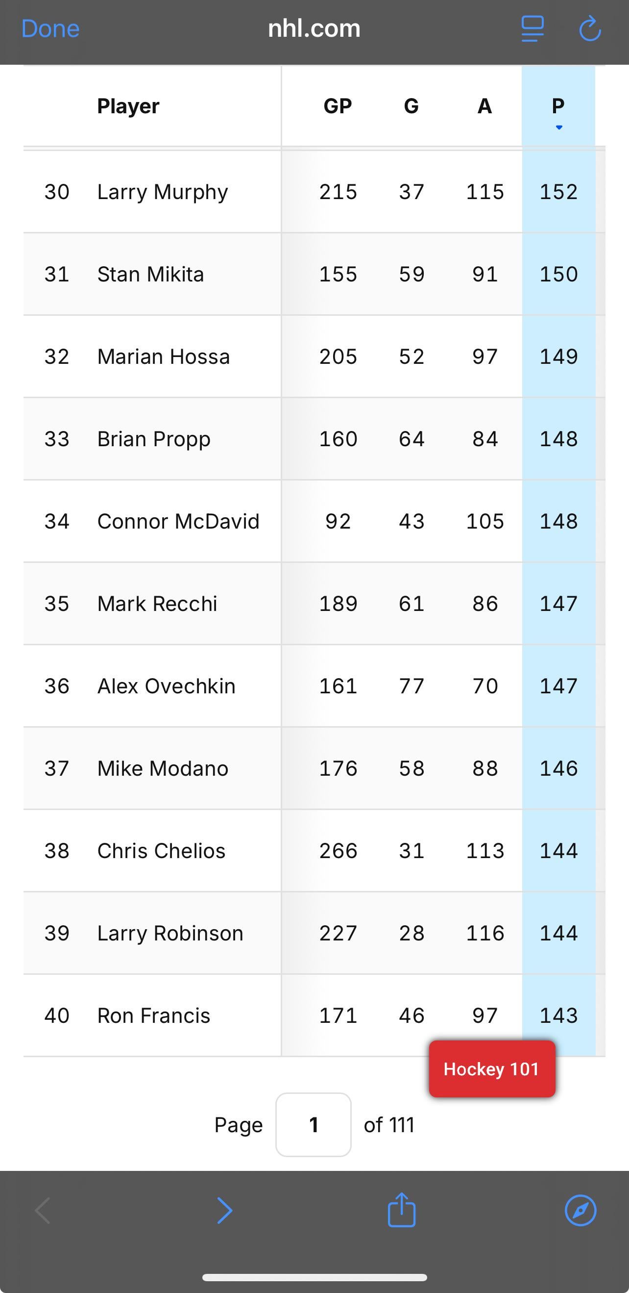 As long a davo can keep making deep runs in the playoffs, he’s on pace right now to beat messier and secure the second spot. And if he has a few more monster years, he could pass gretzky for all time point scorer.