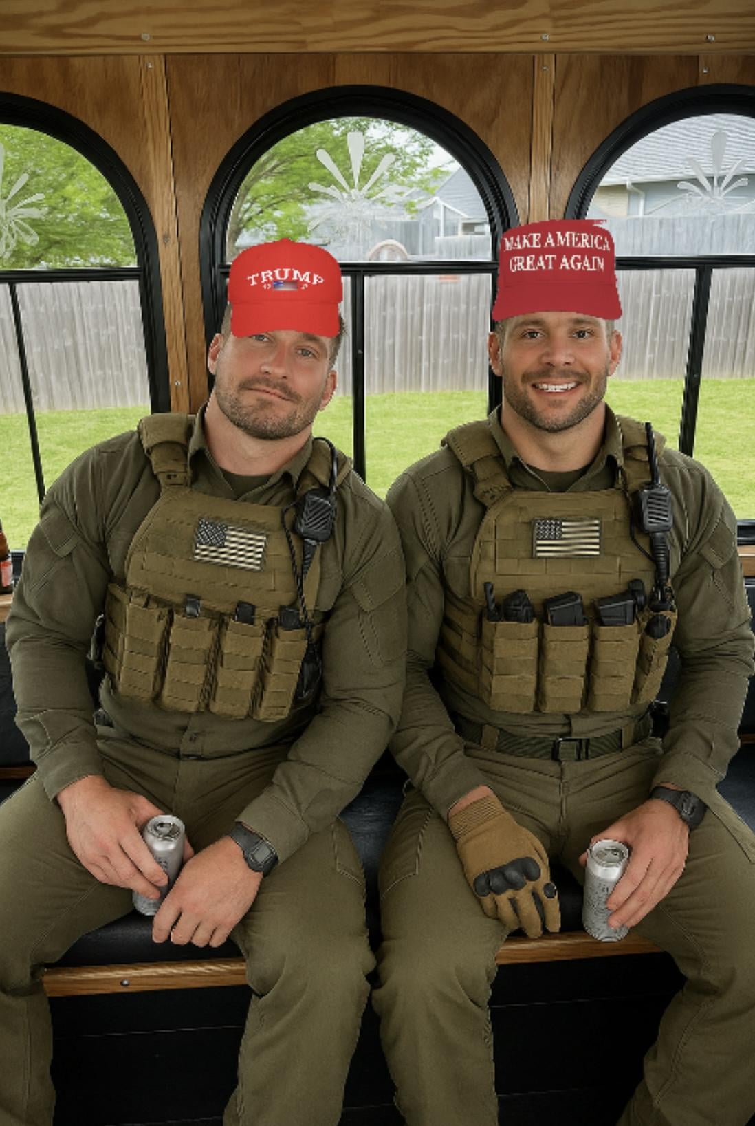 Joey and Nick on the way to help assist ICE Agents 10 comments Both would probably get injured on the way The mental gymnastics of people who criticize other people for their political views is pretty amazing. lol dress up. So tacti-cool They’d end up deporting 90 percent of their fans though God bless them and protect their souls fighting those domestic terrorists I feel like they make the cans look small oUr hERoS You mean the ultra rich white boys that grew up in, let’s see, Pawnee Wisconsin might be conservatives? Huge surprise 😂 They’ll both be back home safe in a week with a shiny new Purple Heart pin. Don’t worry.  Hate them both equally Leave a ReplyYou must be logged in to post a comment.
