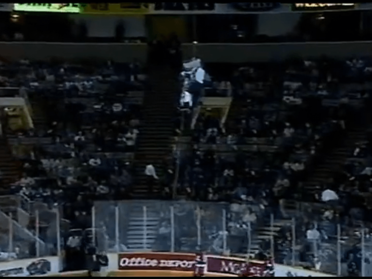 S.J. Sharkie, the Sharks’ mascot, got inducted into the Mascot Hall of Fame today. Here is footage of Sharkie getting stuck prior to the Sharks’ March 12, 1999 game against the Detroit Red Wings.