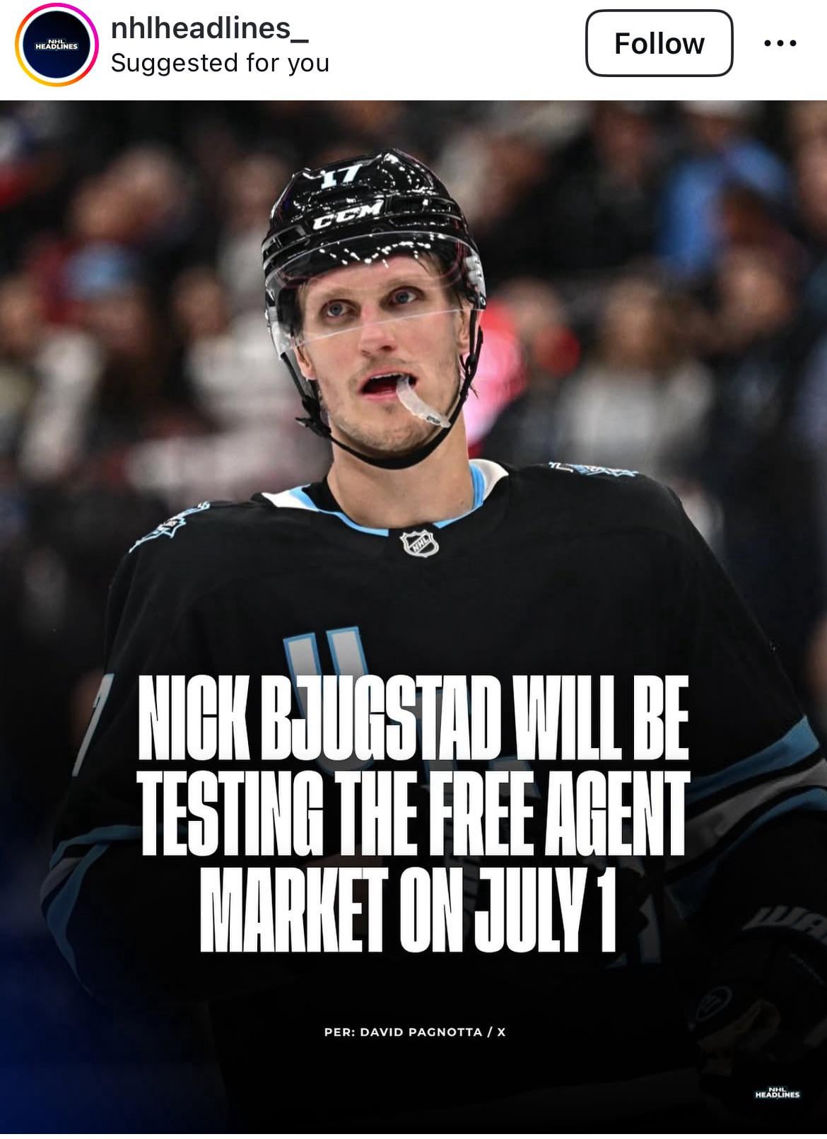 Ah… Bjugy. Lots of love for that guy. It probably means that, for Utah But is gonna be filling in on 3rd line? It’s good for the Russian kids coming in. I hope BJugy gets a good bag back home on a contender?