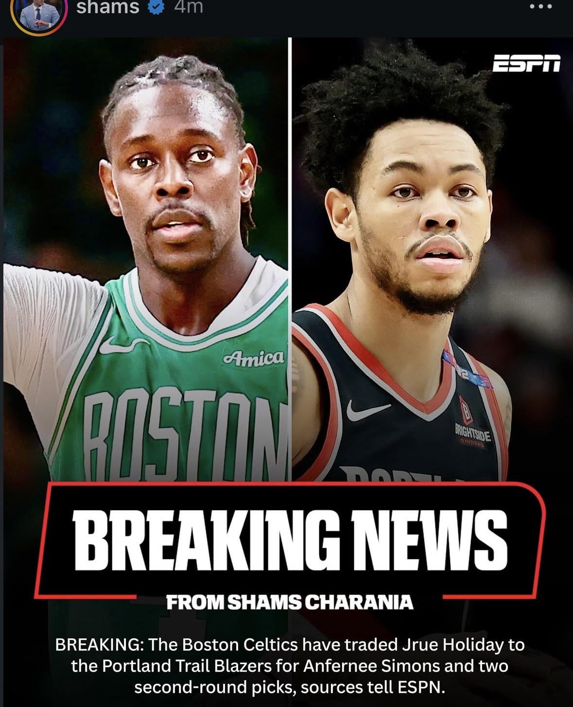 I think Celtics got a steal. I wasn’t even sure that Jrue was a positive asset. He’s making $35m/per for next 3 seasons. He will be 37 years old in final year of deal.