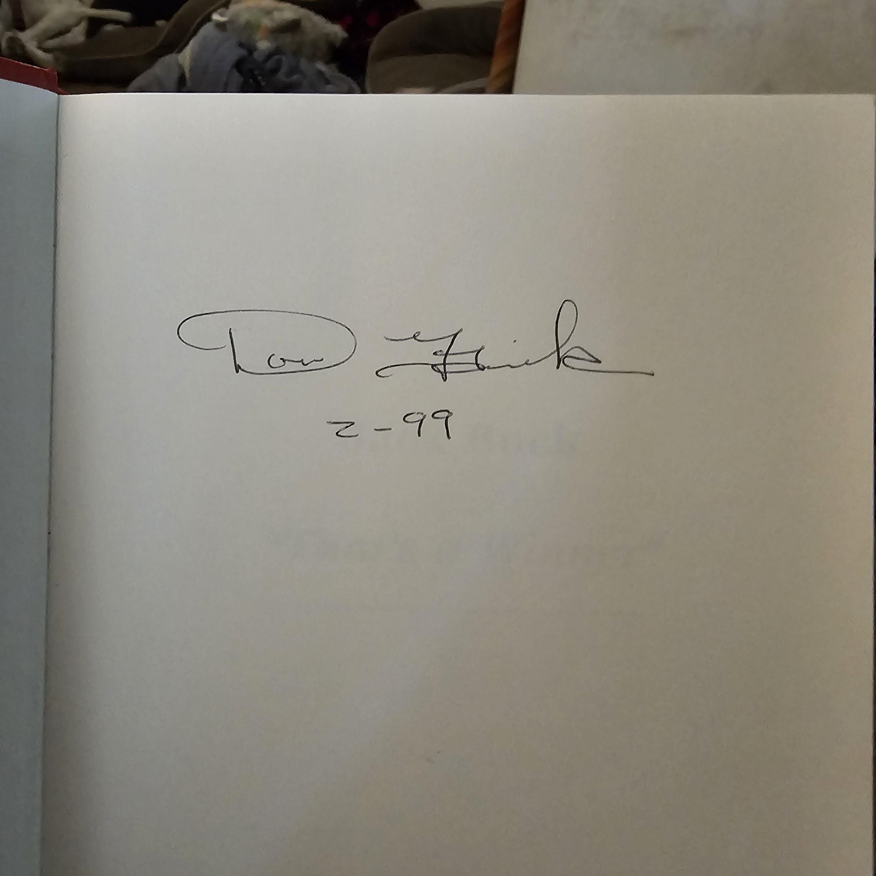 I saw other examples of his autograph online where he signs the month and year below his name – Feb ’99 in this case.