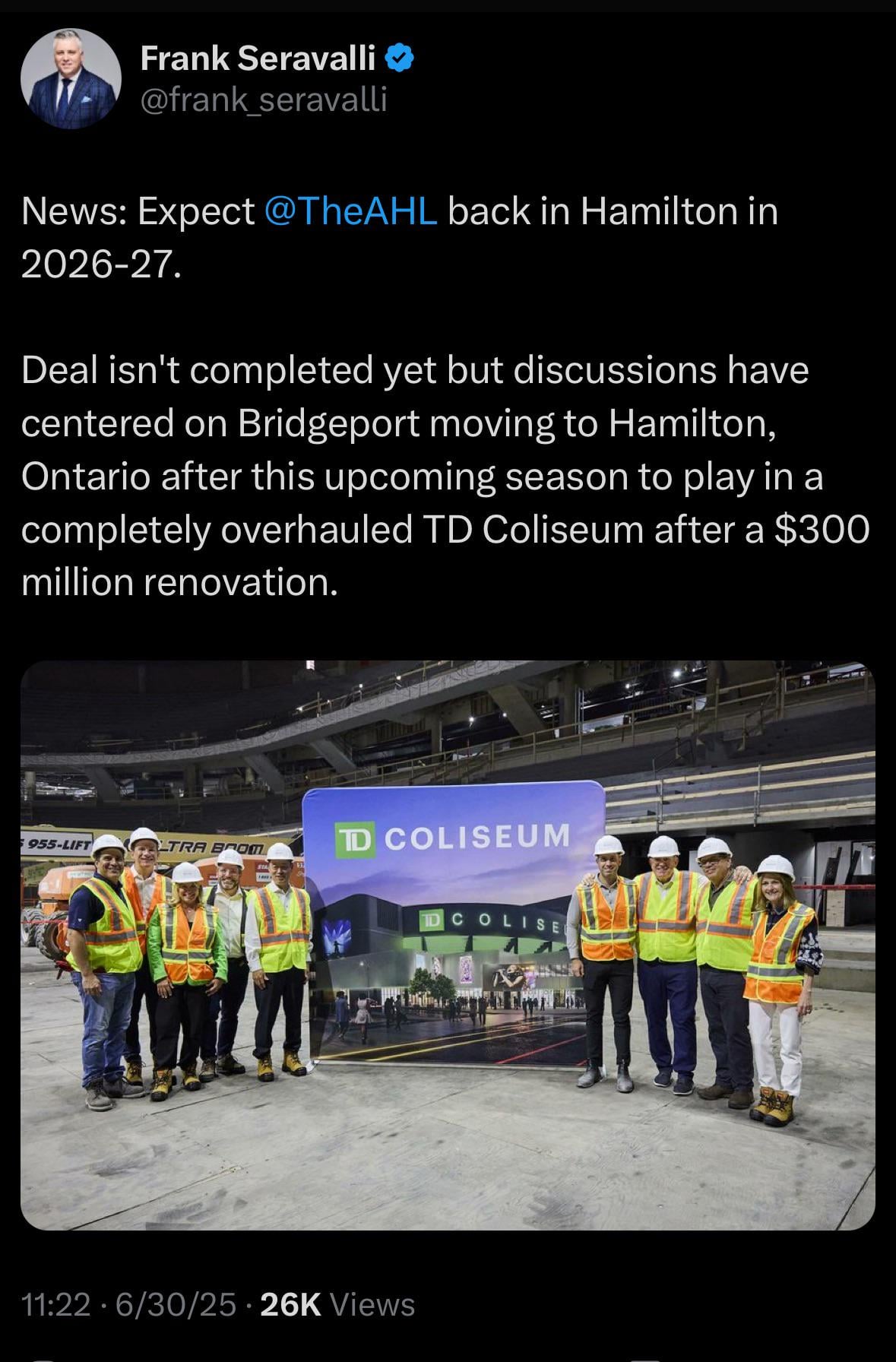 [Seravalli] Discussions have centered on Bridgeport moving to Hamilton, Ontario next year