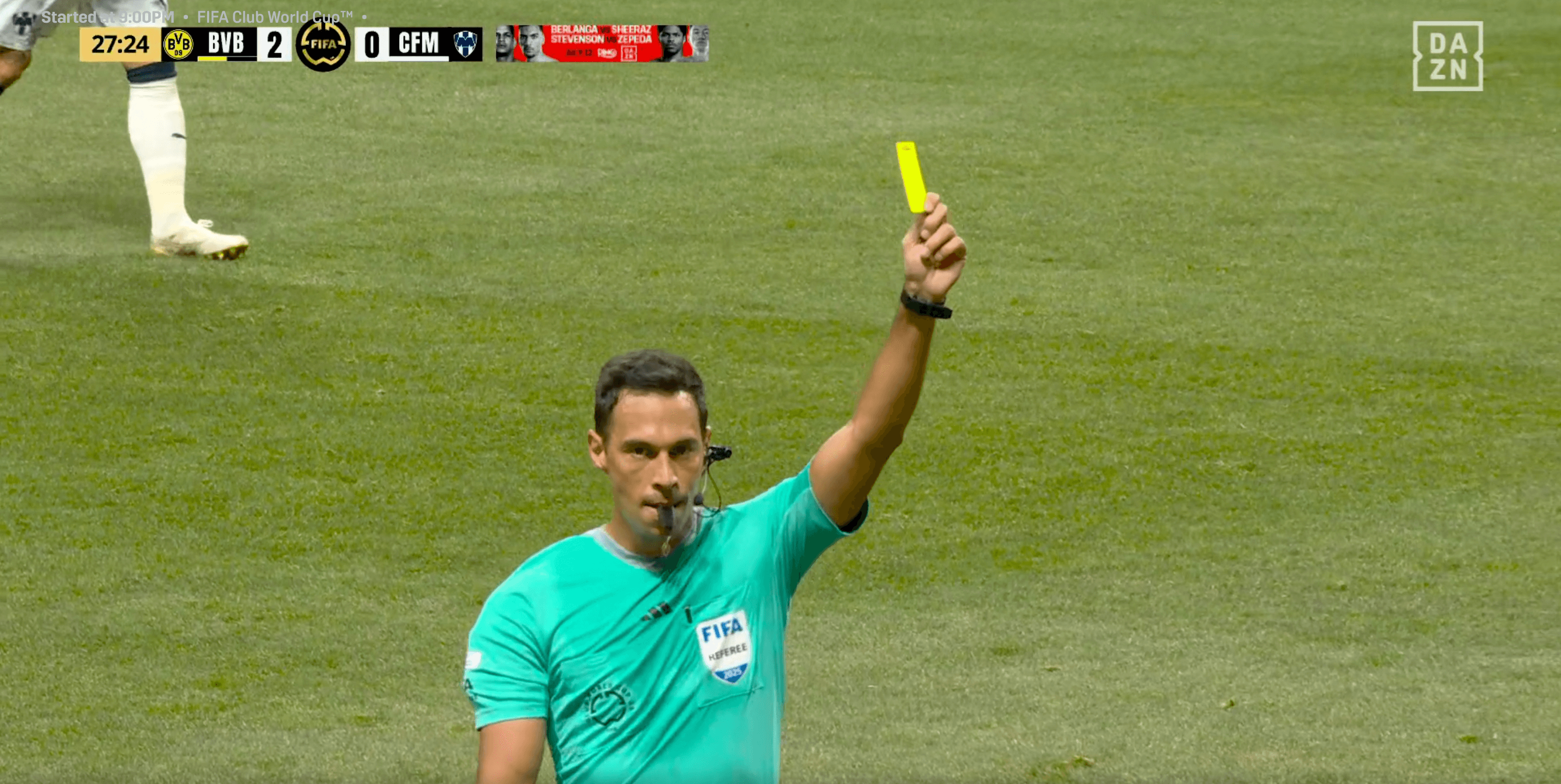 After 27 minutes, with Dortmund already 2-0 up, Jobe tracked Monterrey’s Nelson Deossa down the line with the Colombian going nowhere, before a needless late foul brought a caution that he could have avoided. The change in his body language was visceral, knowing the consequences of such a split-second decision.