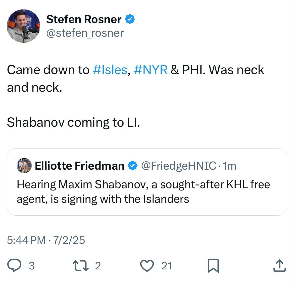 Awesome get, he was very sought after. Have to imagine the plan is to move Barzal back to center or to make a few additional moves. All of a sudden it’s pretty crowded on the wing.