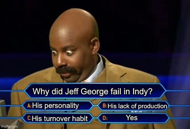 We did not take a step up into Greatness…we instead made a Headslide into 1-15 due to our bad Bet.The 1991 colts season was to put it as bluntly as possible was a Fucking ABOMINATION.Jeff George started all 16 games in 1991.His record and by extension the Colts record was 1-15.Now being fair here to the three Jeff George fans yes he was sacked 56 times in an era where QBs Could get murdered.and yes the colts had one of the worst defenses in the league but come here for a second…THEY HAD THE WORST OFFENCE IN THE ENTIRE LEAUGE!!! JEFF THREW 10 TOTAL TOUCHDOWNS!!! IN A 16 GAME SEASON.TEN.the Same amount of fingers you have.His Yardage totals were ok i suppose hell ill give him some credit he was a Yardage monster but none of it matters if you CAN’T SCORE!!!
