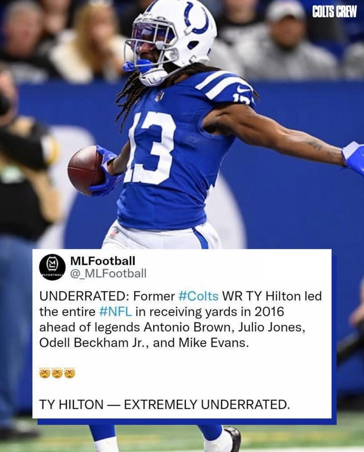 Still sad he never got to 10k yards but he is for sure the third greatest COLT WR ever. If AL was healthy for the last few years, TY would have broken some records either way. Fun times. TY ROH 2030
