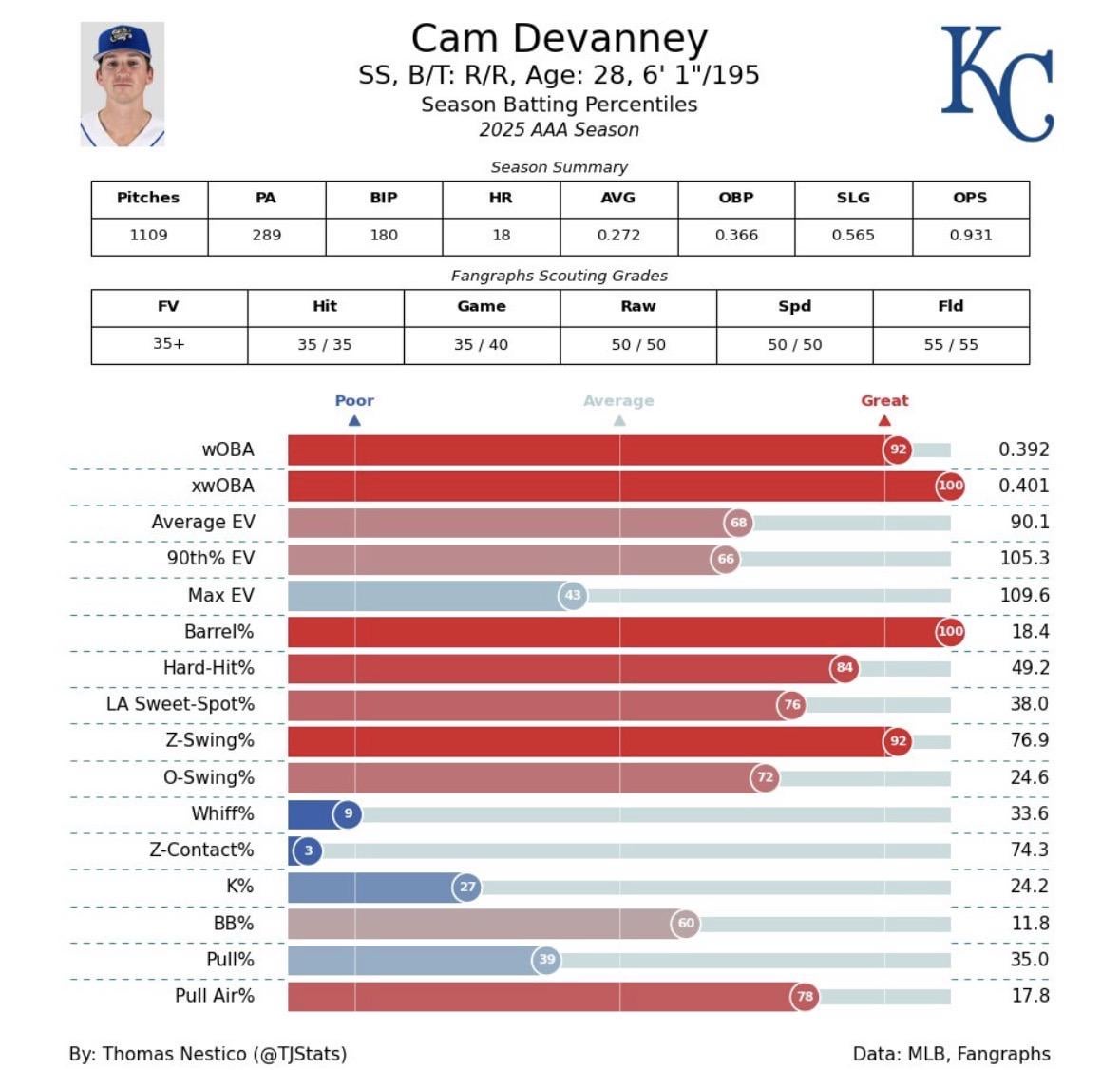 Big slugging metrics, good plate discipline, a ton of swing-and-miss. A pull-air power profile. 1 comment So he’s in the bottom third percentile for contact made on pitches in the zone in AAA. That has me worried Leave a ReplyYou must be logged in to post a comment.