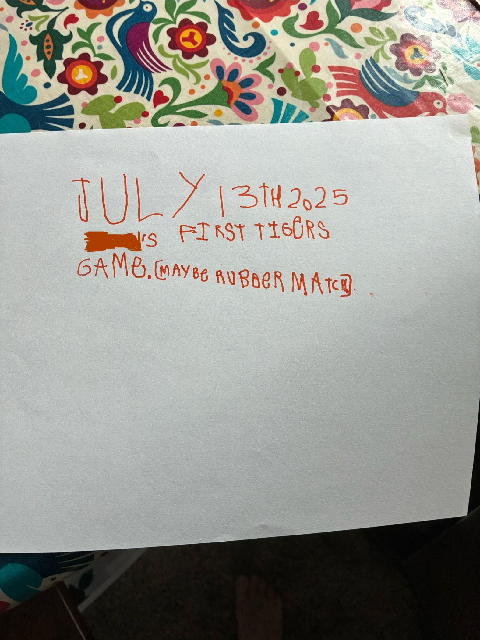 We told our sons about getting a “first game” certificate from fan services when we go to the game on Sunday. This morning, one of them pulls out his markers and paper and makes his own. I can’t wait to see his face when we are in Comerica.