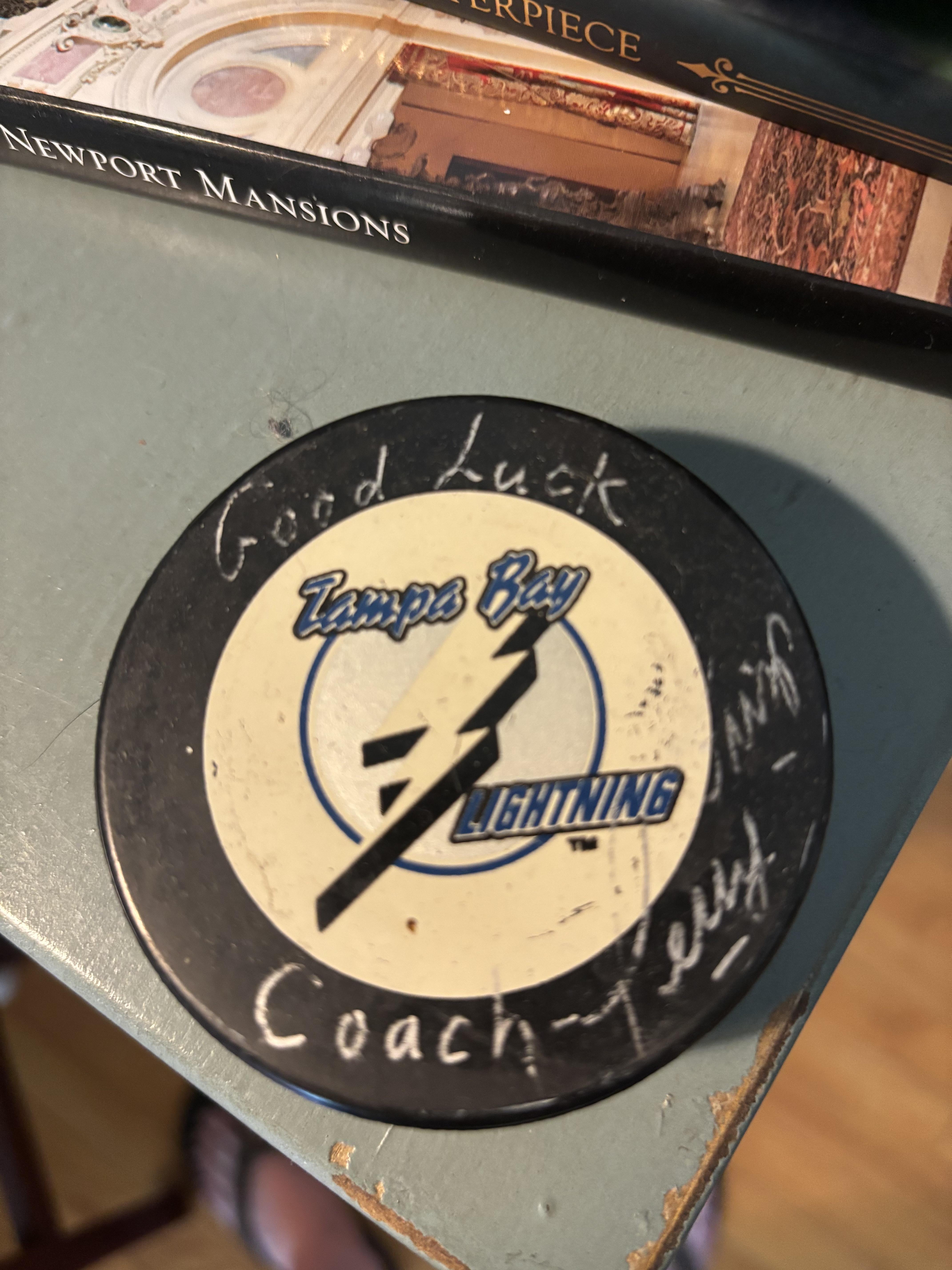 Got the puck signed by Terry Crisp after going to Damon’s — The Place For Ribs