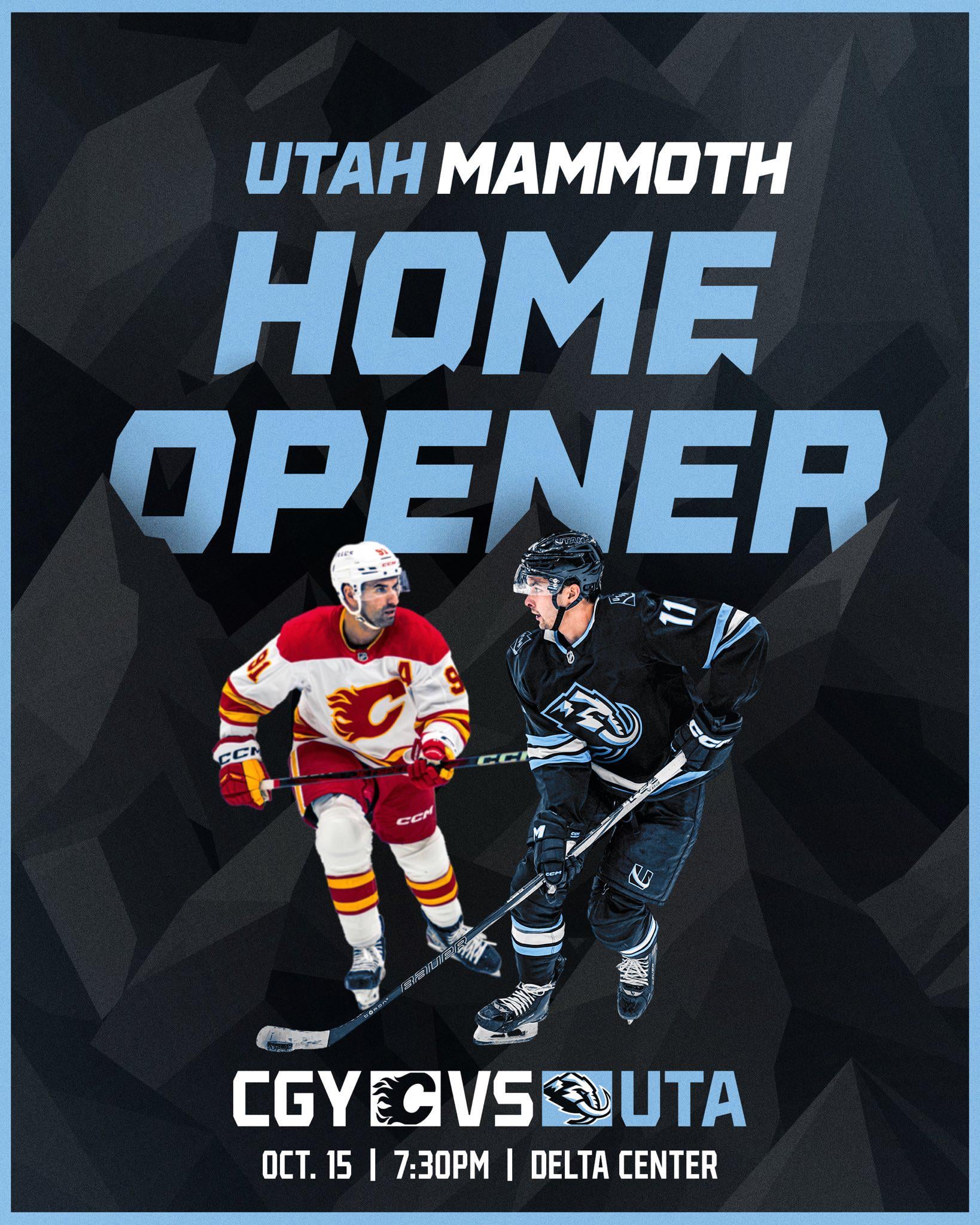 The home opener for the Utah Mammoth will be played on Oct. 15 against the Calgary Flames. Tusks Up!