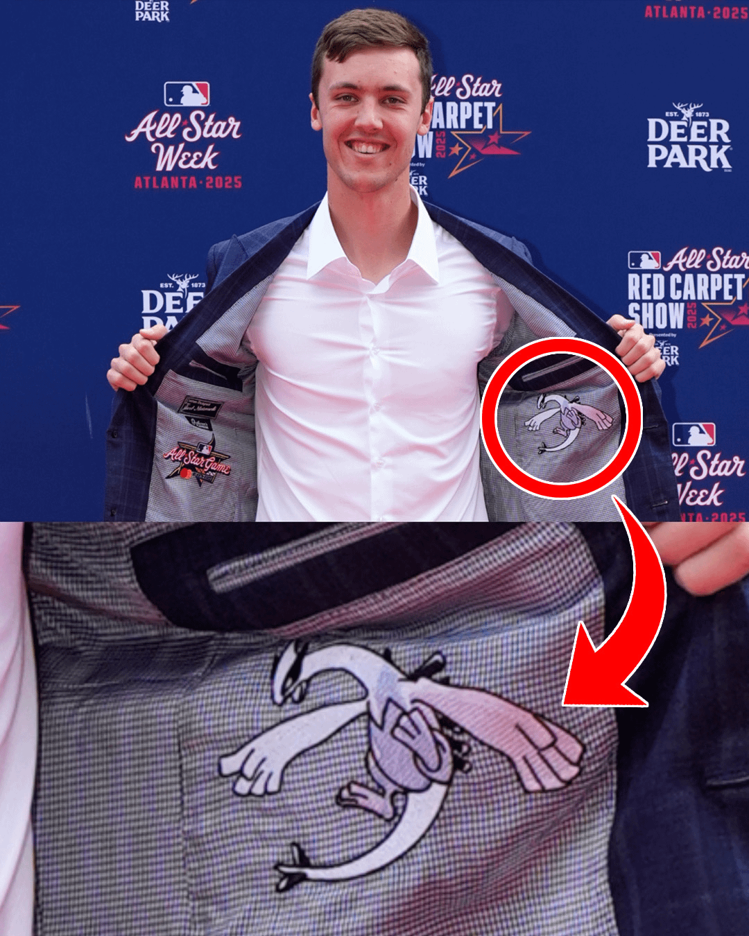 Brewers pitcher Jacob Misiorowski had the Pokémon Lugia on the inside of his suit jacket for the All-Star Red Carpet