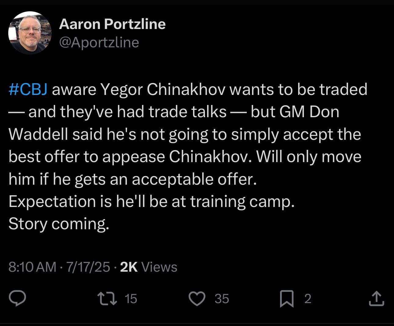 CBJ took Chinakov in the first round when he wasn’t even on some people’s draft boards. Now he wants out.