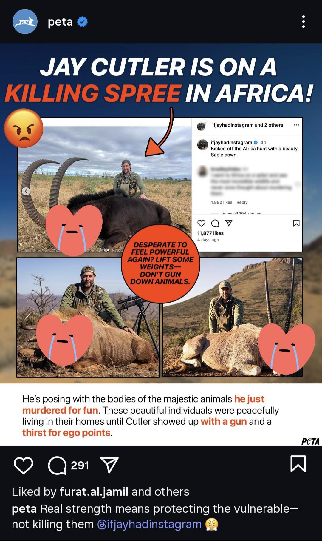 Im not one to defend the Cutlet but he dropped a shit ton of cash on a poor community to go on safari and shoot animals who’s meat will be donated to said poor community.