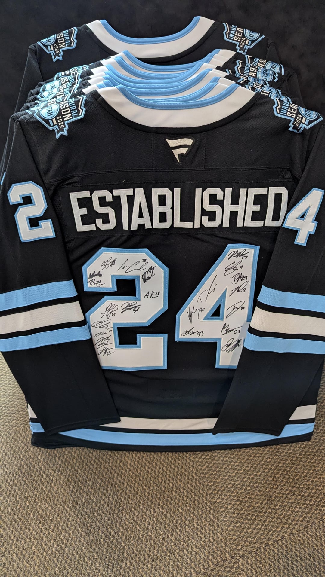 I was at my local framing/photography shop, Pixels, in Sandy today getting some prints framed. The framer at the shop mentioned that they were framing a lot of jerseys and lo and behold I saw a stack of inaugural season jerseys that were signed by a lot of guys on the team!