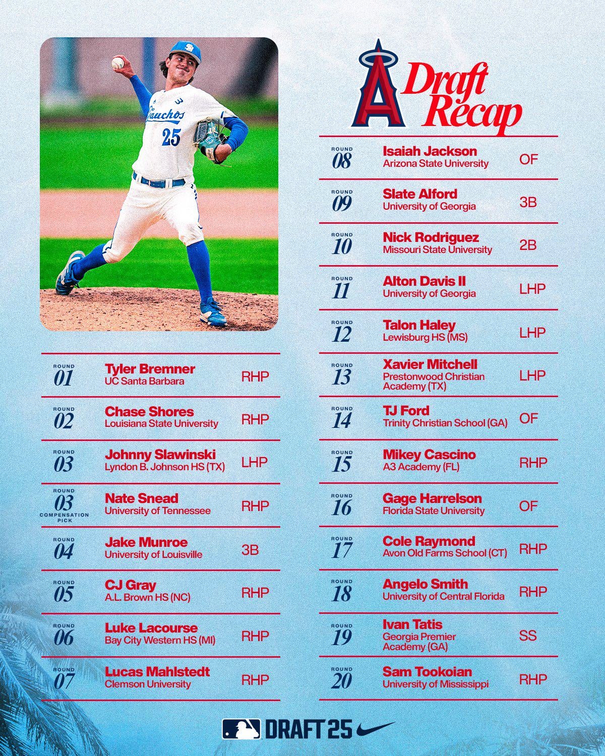The Angels have signed all 21 selections from the 2025 Draft class