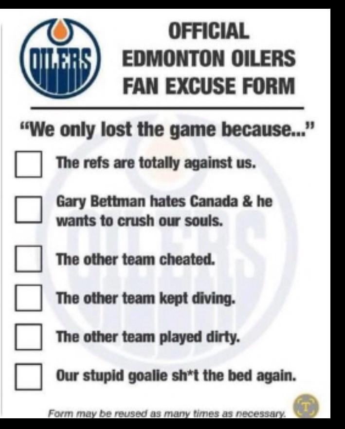 The bettman hates Canada thing is always one that makes me chuckle, because a good portion of them truly believe that he is doing everything he can to assure they can never win, and it’s like if I thought the owner was doing that to my team and truly believed that, I’d stop supporting that sport, and organization. Why waste your energy for eight months, money on merch and tickets, if you genuinely believe your commish is never gonna let your team win?