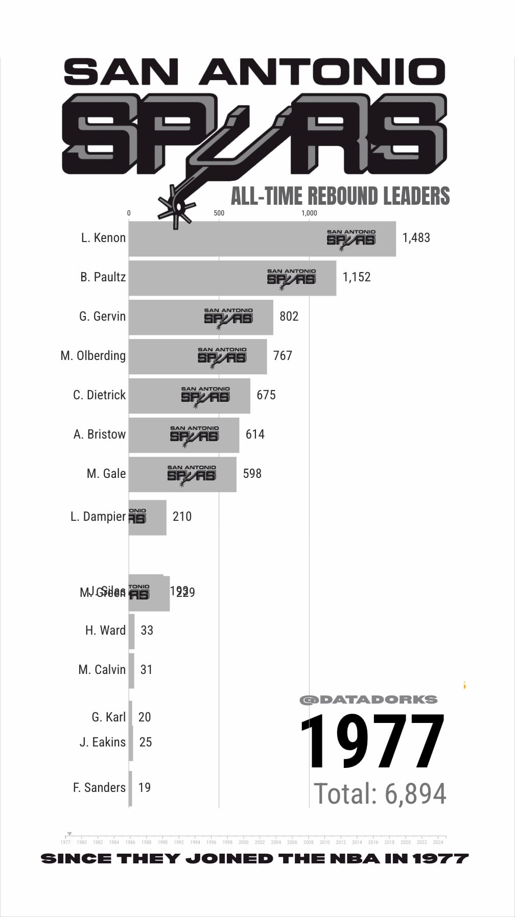 Roughly 15% of every rebound in the 50+ history of the Spurs came from Timmy & The Admiral.