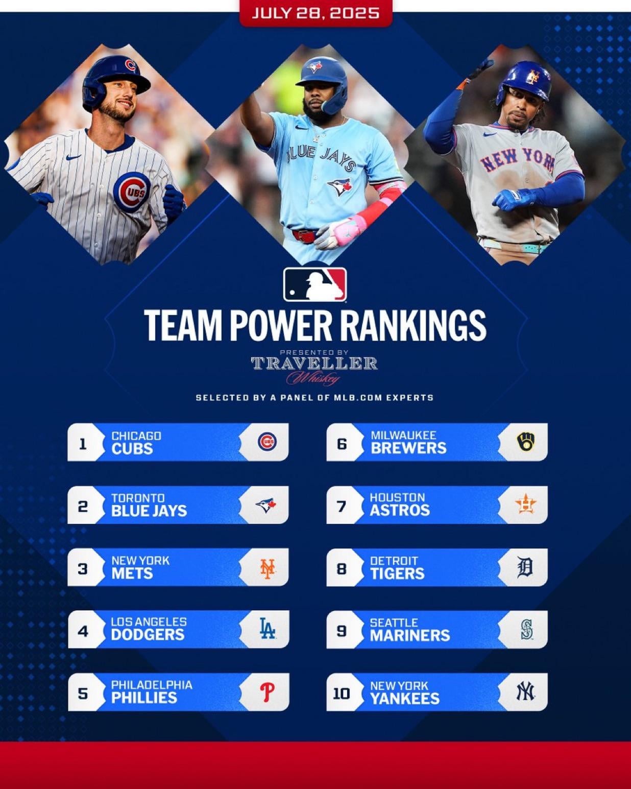 Dodgers are overrated. Brewers and Jays are underrated. Should probably be Jays, Mets, Brewers, Cubs, Phillies