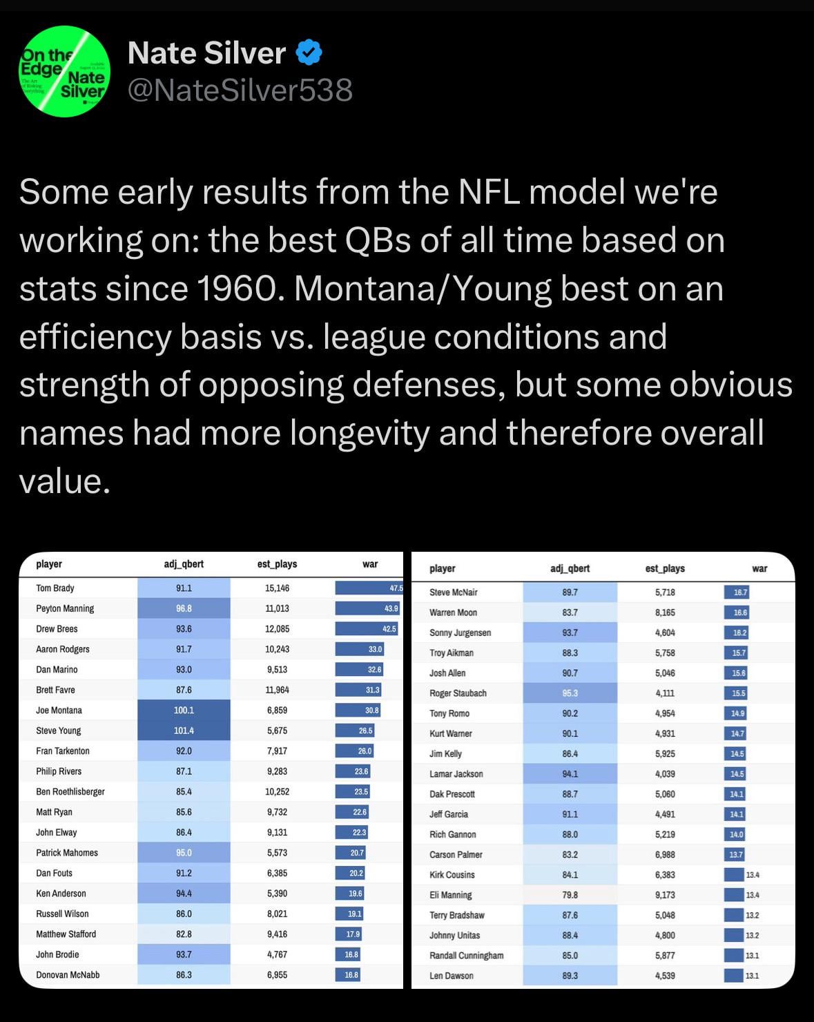 The warner at 28 is a joke. Interesting he also has Phillip rivers who never won a SB ahead of him and somehow Russel Wilson who has fallen off the later stage of his career.