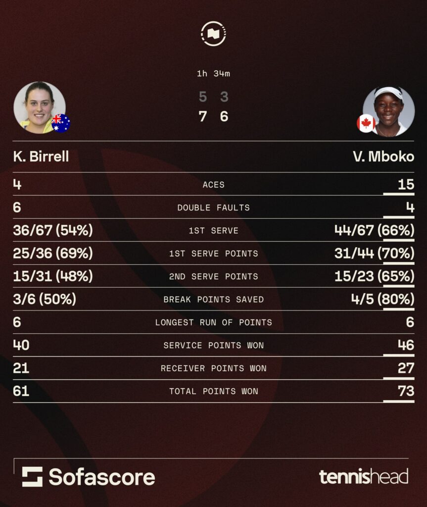 Canadian starlet Victoria Mboko has swept through to the second round of the Canadian Open, defeating Kimberly Birrell 7-5 6-3.
