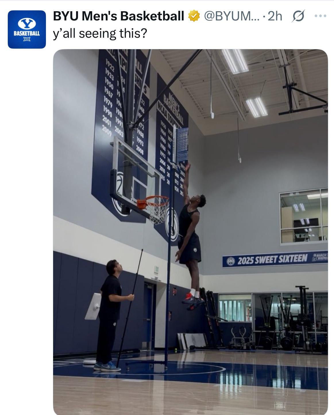 I rarely call fake, but I do not believe this for a second. I’ve never seen anyone in the history of basketball jump this high. If it’s true, I’ll happily eat crow. But I mean, just look at it.