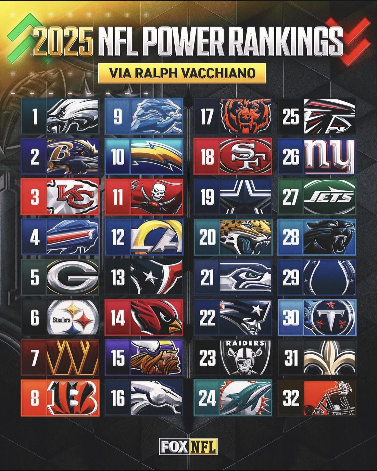 That the Steelers, Bengals, and Chargers are ranked too damn high.
