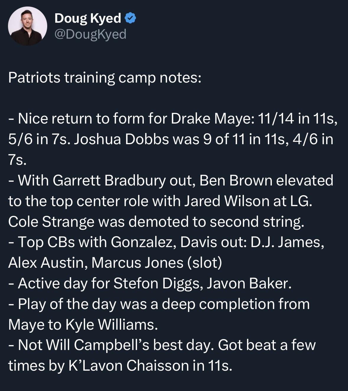 Here comes the will Campbell overreaction. Everyone in the media hated on the kid pre draft. Now it’s gonna be a dunk on Campbell-fest after one iffy practice. Not to mention Chaisson has been jumping the snap all TC and Campbell is in his third real practice in the nfl.