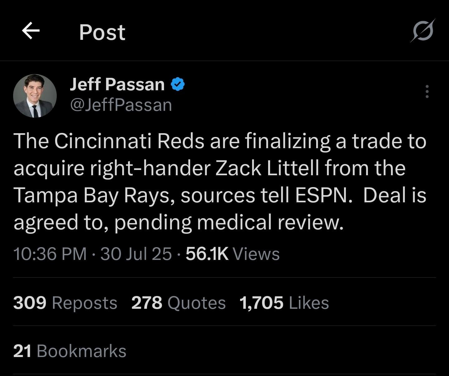 supposedly the return for Littel is supposed to include a player from the actual Reds roster 👀