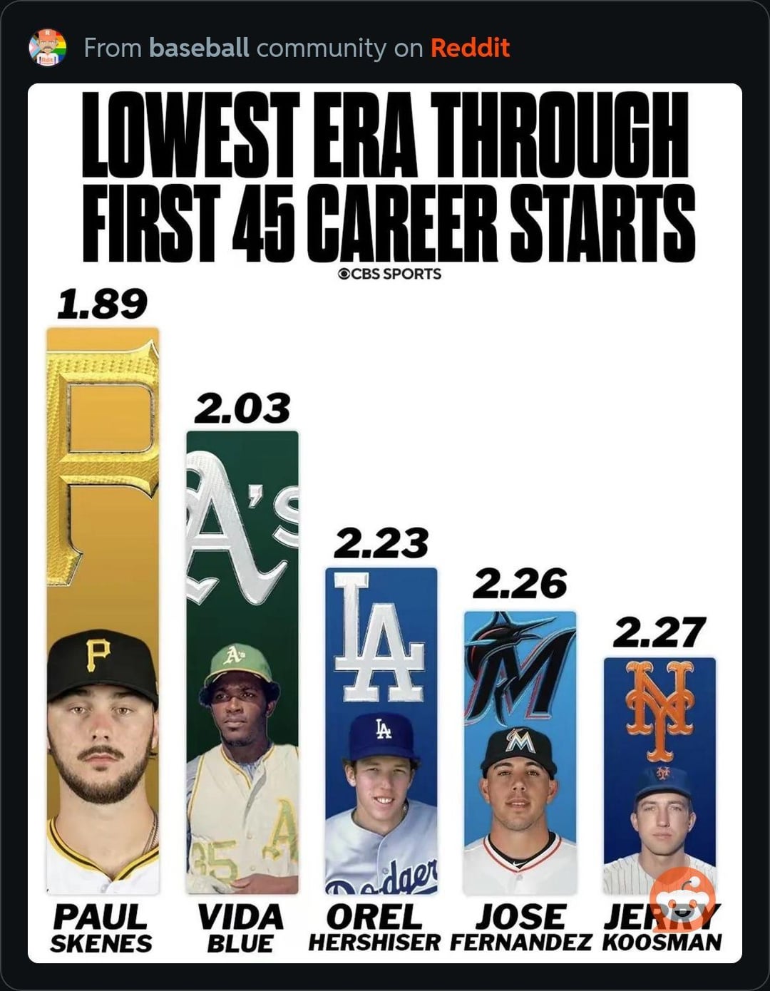 Not to take anything from Skenes but I’m curious how many innings pitched he had in those starts vs the other guys.