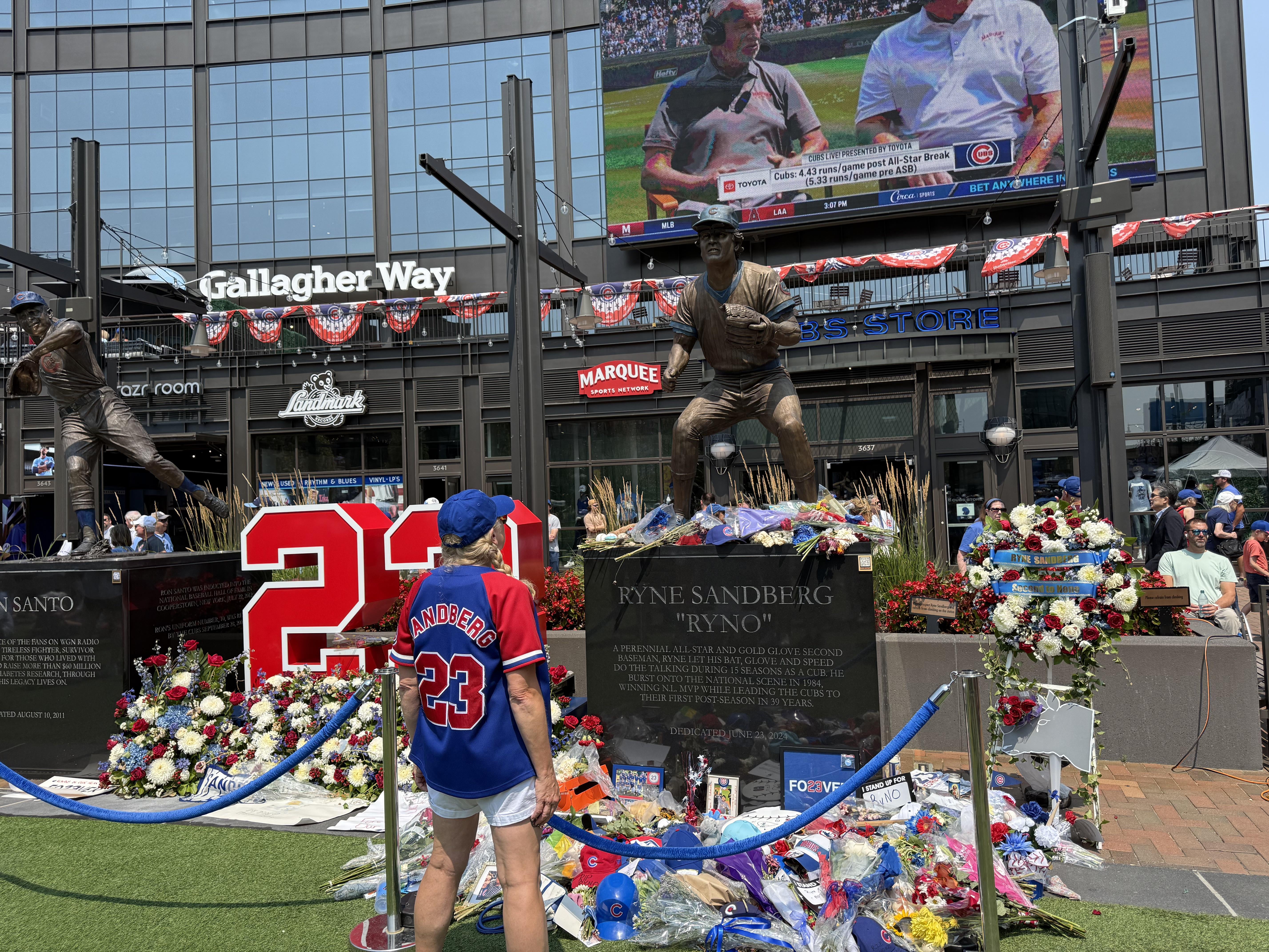 2. I stopped by after work on Thursday. It was really emotional and meditative to be there. Walked into Gallagher Way alongside ~10 others and it felt like a pilgrimage. If anyone has been debating finding time to make it over there, I really recommend you to. Spent 10 minutes just standing there and it was really cathartic. It’s really special to see how much he meant to so many people. He was my dad’s favorite player — Ryne’s passing really hit deep for me there.