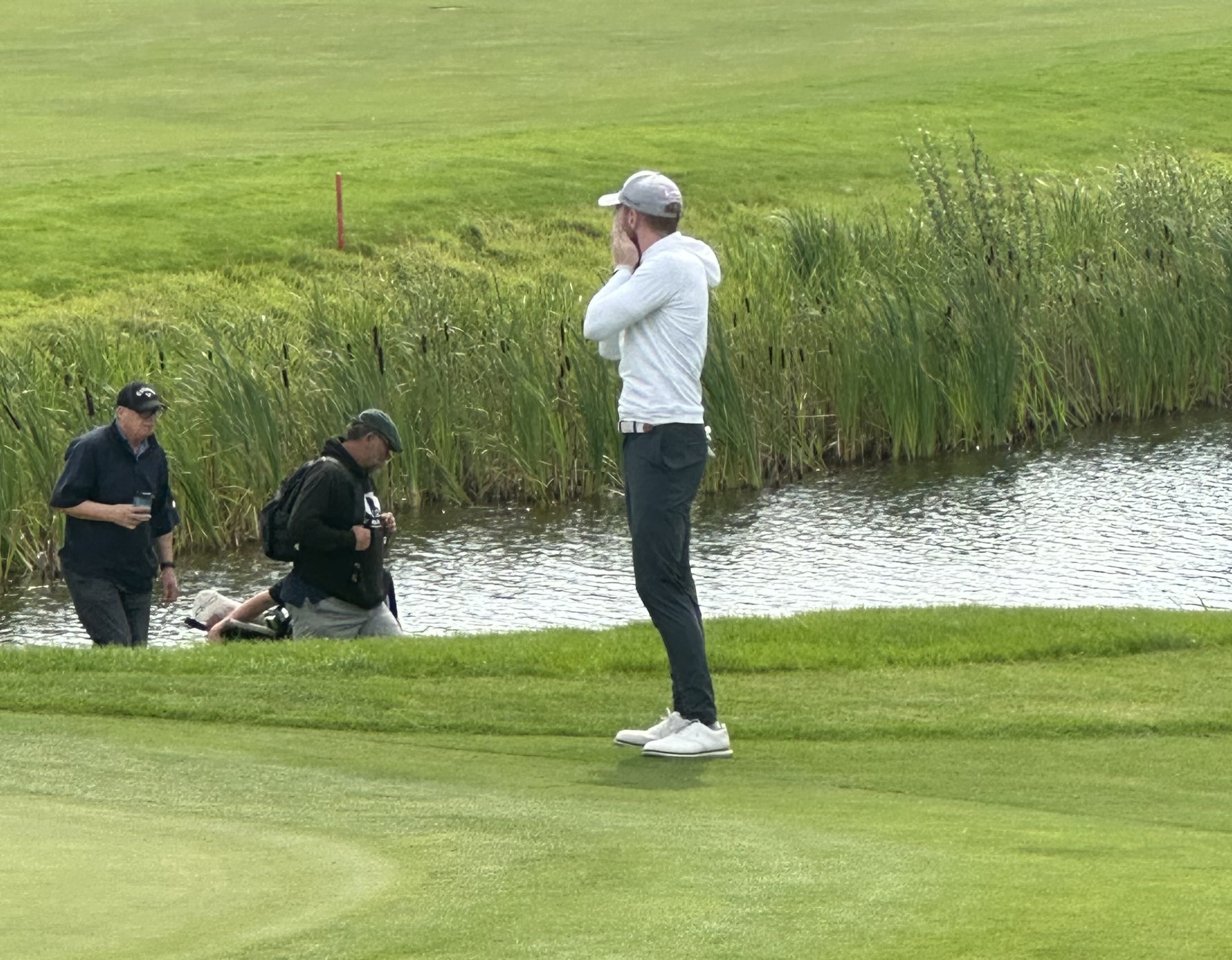 After the round, Murphy told me he made one of his best swings of the day with the 5-iron, but that the wind had switched as he hit or he and his caddie had misjudged the wind direction. The ball splashed in the water close to the bank.
