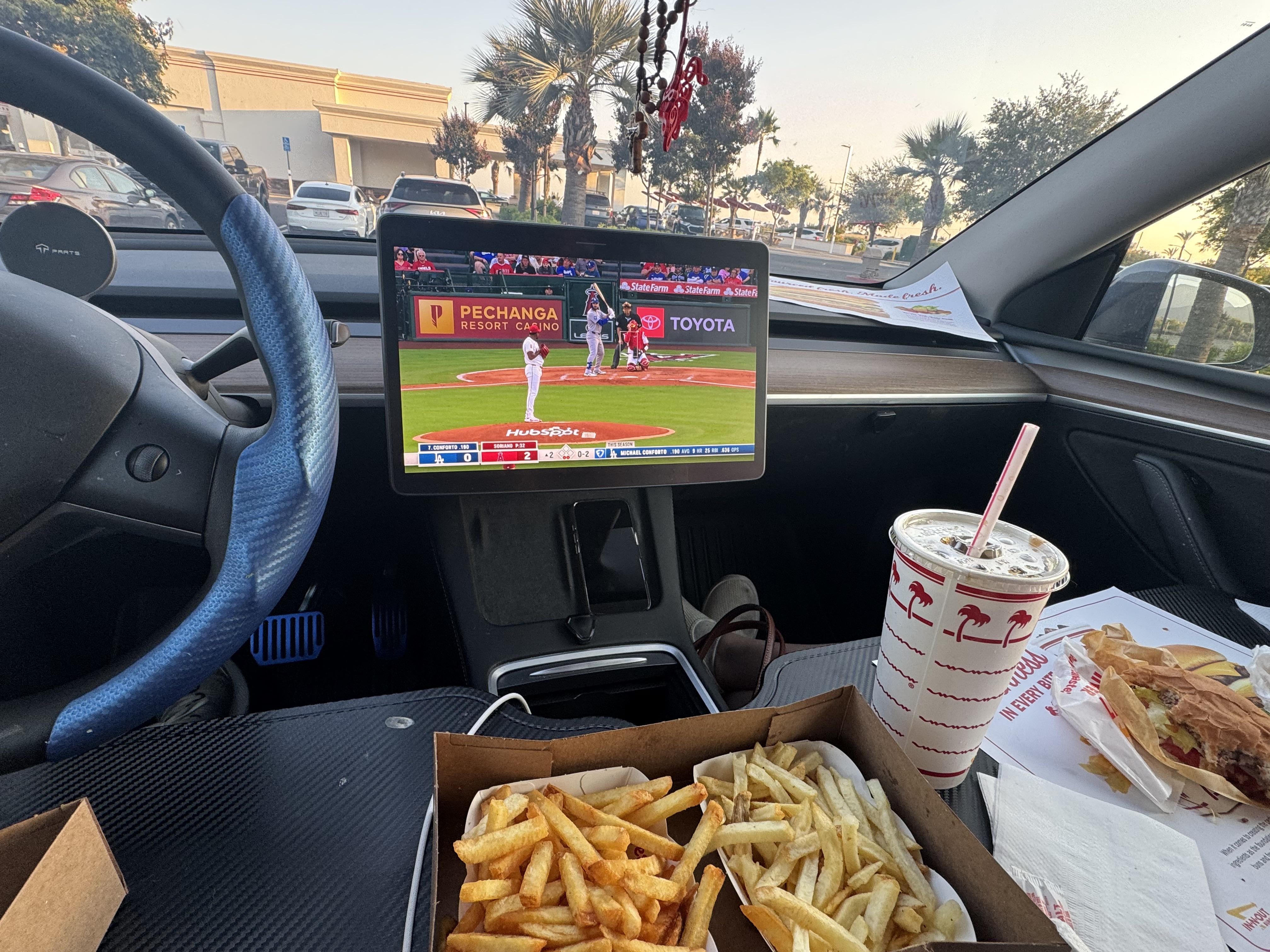 Second best seats to watch the Freeway Series (First best being inside the Angels Stadium ๐ญ) 13 comments What a quintessential SoCal vibe ๐ ๐ฅ Sick! What are those fries on the left, well done?ย Usually dont care for their fries but those look pretty solid. Curious what app are you able to watch live tv on the tesla? Careful not to drop a fry or two between the seat and the center console. Better than anything offered in the stadium Cheers man! ย Sweet 4-0 gameย Solid!! In-In-Out, Tommyโs or The Hat ๐ This should be an ad for the angels AND InNOut This right here is the vibe ๐ ฐ๏ธ๐๐  Thatโs the life baby ๐คค Leave a ReplyYou must be logged in to post a comment.