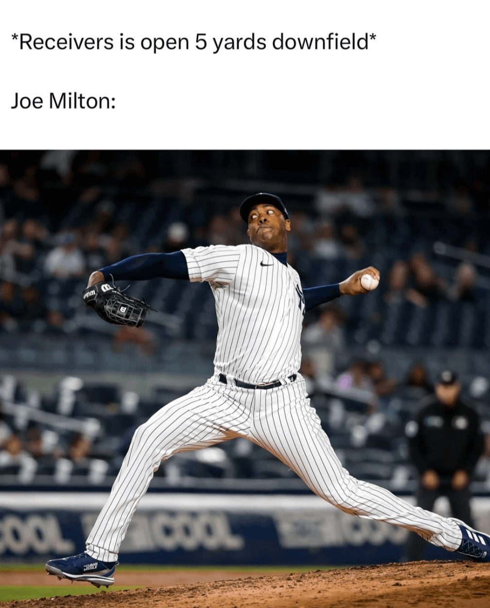 Heads up! 1 comment  Receivers after trying to catch a Milton missile Leave a ReplyYou must be logged in to post a comment.