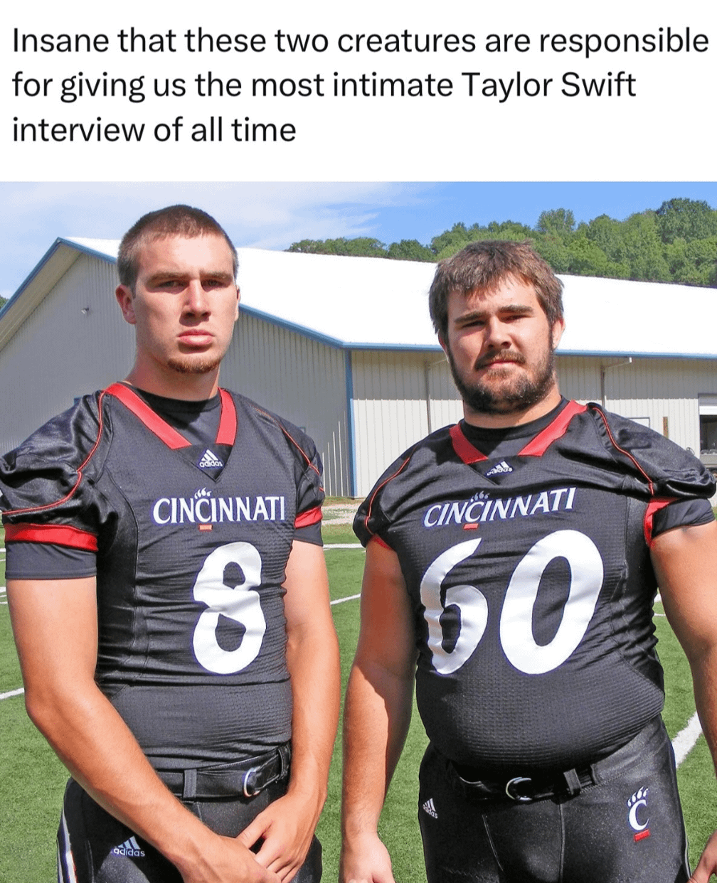You know, we could just ignore them and not give them any attention. I don’t understand why some of you won’t just come out of the closet and admit you are a fan of this taylor kelce stuff. Just go take this content over to a swifty sub, im sure you’ll get more upvotes. Also you’re gay.